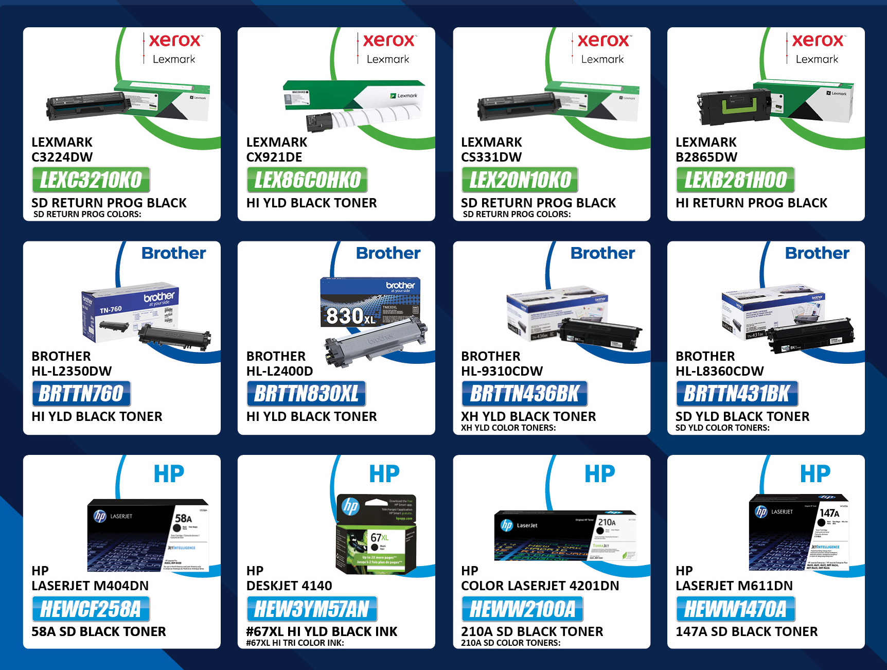 At Toner Cartridge Direct, we offer a vast range of toner cartridges and related products for all major printer brands — including HP, Canon, Brother, Lexmark, Epson, Dell, and more. Whether you’re printing reports, photos, presentations, or everyday documents, we have the compatible and genuine products you need at prices that fit your budget.
